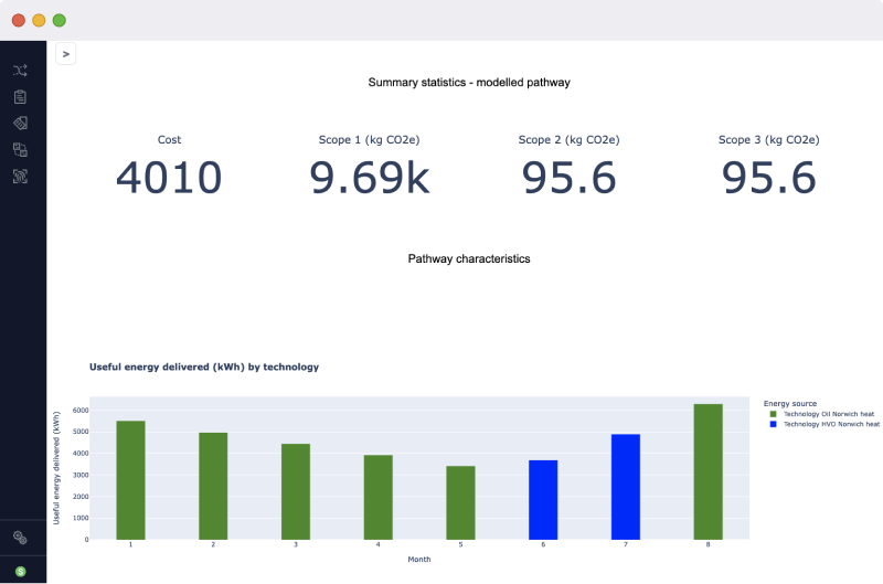 Optimise and track the cost and emissions benefits across the business for your chosen pathways.